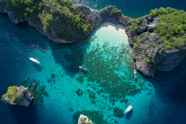 Dans des eaux peu profondes et des dizaines de petites îles sont disséminées dans les environs avec des baies d'amarrage, ce qui en fait un havre pour les marins.