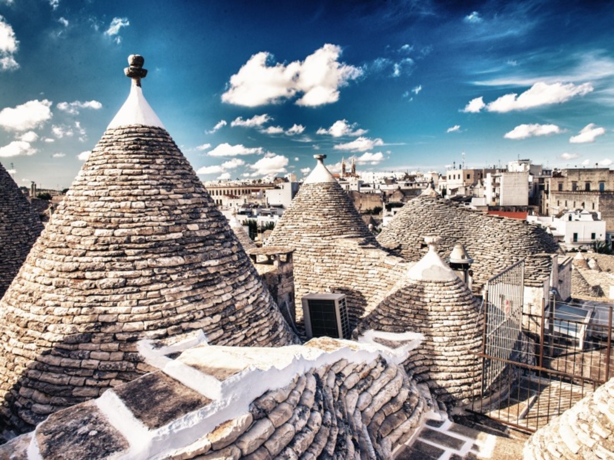 Envol pour Brindisi. Prise en charge du véhicule de location de catégorie B type Fiat Panda (1 à 3 personnes). Surclassement offert en Catégorie D pour les dossiers de 4/5 personnes. Nuit à l’hôtel dans les environs d’Alberobello.