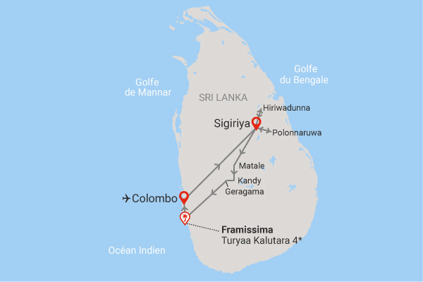 Combiné circuit et hôtel Royaume de Ceylan (collectif) & plage au Framissima Turyaa