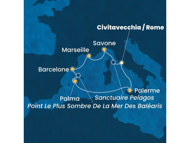 8 jours/7 nuits au départ de Civitavecchia-Rome (Italie).