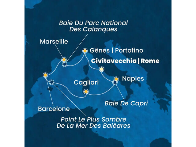 8 jours/7 nuits au départ de Civitavecchia-Rome (Italie).