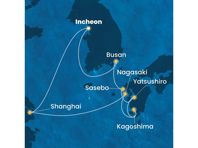12 jours/11 nuits au départ de Incheon (Corée du Sud).